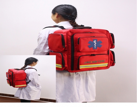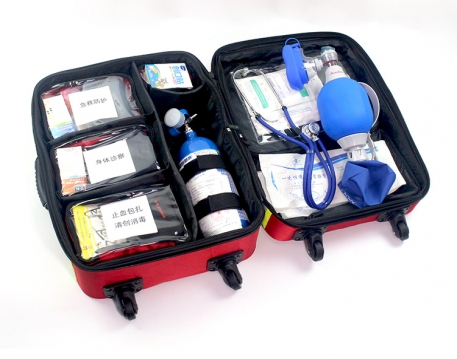 隱藏式拉桿,可拆卸雙肩背帶,不銹鋼肩扣大號雙向拉頭,堅固提手,工整車線,警示反光條大號藥盒,可分類歸納安瓿瓶等急救藥品黑色里布,不易弄臟包體,器械松緊綁帶,分類清晰透氣的背負系統設計,減輕背負壓力